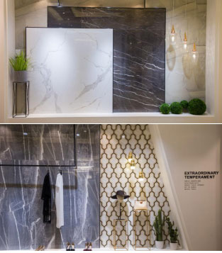 今年以來宏宇持續開發榮耀系列(包括榮耀大板、榮耀現代仿古磚、榮耀大理石瓷磚等),900x1800mm榮耀大板是宏宇2018年初創新推出的形象產品,花色新穎,紋理自然立體,無論大小空間均可實現完美搭配;7月重磅推出900x150mm原邊木紋系列,原邊成型,無需切割,更省時省心,再現名木的自然珍貴和高級質感;8月,推出600x1200mm新規格純平大理石瓷磚新品,通過不同鋪貼方式不同的搭配,組合出充滿個性、創意與變化的效果。宏宇的產品研發一直緊隨著當代家居潮流趨勢,豐富的產品體系呈現品牌高端的設計調性,實現品質與品味共享。