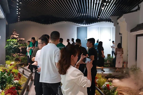 在展廳打造上,以江南美學方式理念設計打造沉浸式、體驗式的時尚新潮空間,展廳空間更有韻味及禪意,產品簡中帶奢,更具藝術氣息。