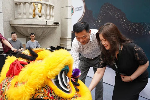 鑼鼓喧天,掌聲不斷。在全場矚目之下,喜慶的醒獅點睛儀式后,落成典禮達到高潮——