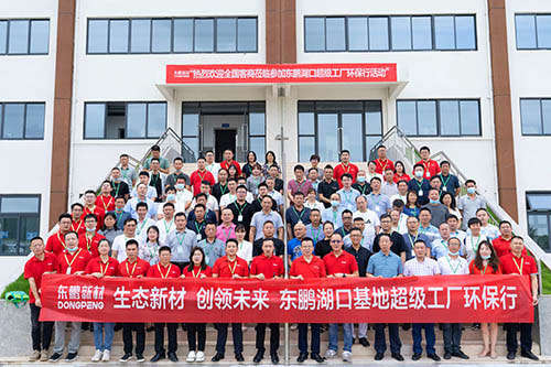 生態新賽道,新材領未來。在生態優先、綠色發展的時代主旋律下,6月29日-7月1日,“生態新材 創領未來—東鵬湖口超級工廠環保行”活動在東鵬新材湖口生產基地和湖口強榮國際大酒店成功舉行。湖口縣縣委常委、常務副縣長徐松茂,湖口縣縣委常委、統戰部部長、高新技術產業園區黨委書記李水木等政府領導,東鵬集團副總裁兼生態新材事業部總經理龔志云等企業領導,以及來自全國各地一百余名客商參加了本次盛會,共同匯聚新材智慧,構建政企商綠色發展新格局。