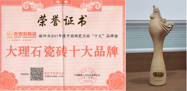 4月2日,在佛山中歐國際會議中心,在“陶瓷衛浴十大品牌榜”的頒獎現場,來德利陶瓷憑借著過硬的產品、創新的技術、不俗的銷量以及良好的消費者口碑,獲評“大理石瓷磚十大品牌”,用榮譽見證實力。