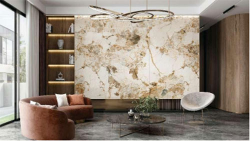 “空山秋雨后,天氣晚來秋”,舉目遠望,蔥郁的樹林,散發著舒心的涼爽,陽光像一縷縷金色的細沙,穿過層層疊疊的枝葉,灑落在地上;金色雨林,受啟于自然,吸取雨林的熱情、活力和赤道陽光,肆意流動的紋理,展現出原汁原味的金色雨林的風情,賦予空間一種生動的節奏。