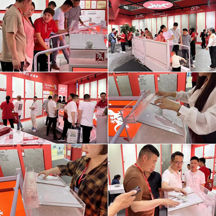 說一千道一萬,不如自己體驗一遍。凡是前來挑戰的客商,均被碧虎G5超防滑瓷磚的性能所征服,防滑實力不懼任何挑戰,獲得一致肯定,碧虎展位一度人滿為患!