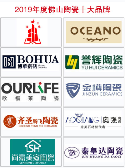 以下為2019年度佛山陶瓷十大品牌獲獎目錄: