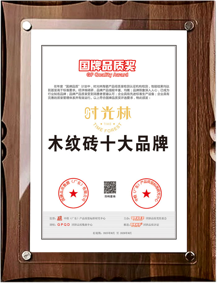 近日,在家居建材領域備受矚目的年度評選中,時光林陶瓷憑借其卓越的產品品質、創新的設計理念與良好的市場口碑,成功榮獲國牌品質獎 “木紋磚十大品牌” “產品和服務質量誠信品牌”兩大殊榮。這不僅是對時光林品牌實力的高度肯定,更是對其多年來深耕木紋磚領域、持續推動行業發展的充分認可。