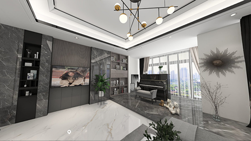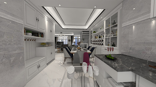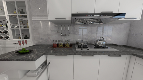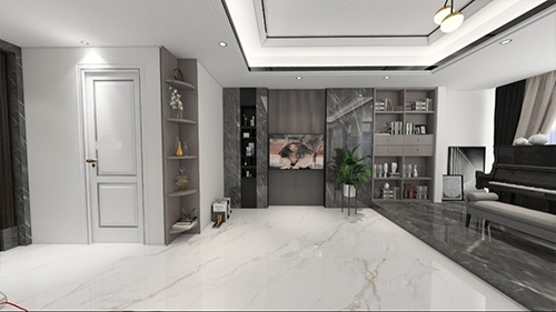 (地面使用:DLL918107F 艾爾白) 入戶直入客廳,整體空間以白色為主色調,整潔、干凈是留下的第一印象。地面通鋪900×1800mm規格的艾爾白,動線流暢,紋理逼真,利落簡潔,美感與舒適感并存。 ![]() ![]() (地面使用:DLL918107F 艾爾白) 客廳設置書架和鋼琴,提高整個空間的藝術檔次。大落地窗增強了房間的光線,也讓整體看起來更加大氣。軟裝的選用加重了色彩的碰撞,雅而不俗,生機又不缺乏高級感。 廚房 KITCHEN