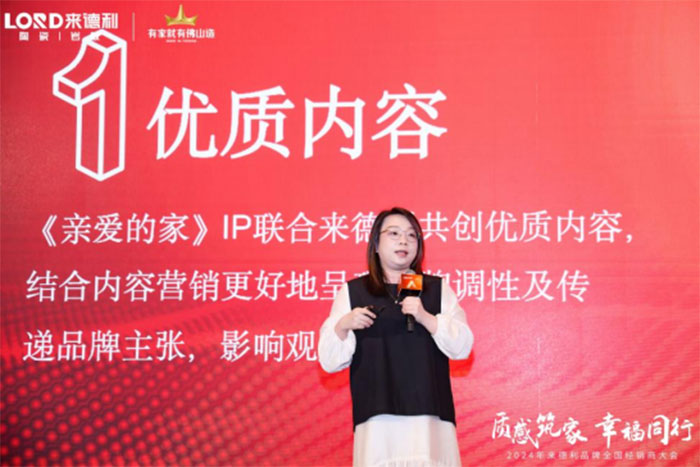 本次大會邀請到《親愛的家》節目總策劃余佳靈分析品牌如何用品質內容IP講好家的幸福故事。根據來德利的品牌定位與節目傳達的生活理念進行融合,并提出品牌與節目的內容營銷方向。