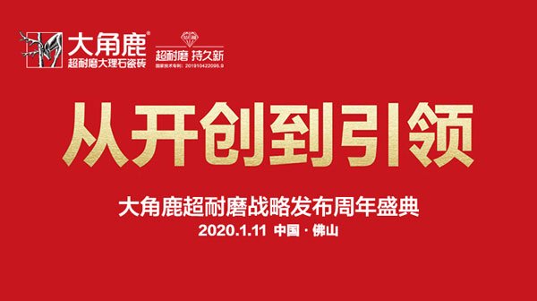 1月11日,從開創到引領——大角鹿超耐磨戰略發布周年盛典在陶瓷之都佛山盛大舉行,陶瓷行業700多位嘉賓和知名人士以及騰訊、新浪、搜狐、今日頭條、房天下、廣東電視臺、廣州日報、陶瓷衛浴品牌網等50多家全國主流媒體與行業媒體共同見證了盛典。