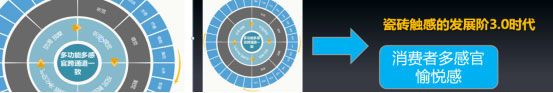 瓷磚觸感的發展經歷了3個發展階段:從視覺主導、單一觸覺特征、關注聲音、功能簡單區分、完全忽略嗅覺氣味特征的1.0時代,發展到視覺主導助力其他感官、多觸覺特征、聲音單一化、單一功能細分、將可能納入嗅覺氣味特征的2.0時代。最終,現在處于通過多功能多感官跨通道一致,給予消費者多感官愉悅感的3.0時代。