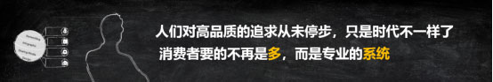 時代在進步,對于消費者來說,高品質的追求從未停步,每個時代都有專屬于那個時代的需求,時至今日,消費者要的不再是多,而是專業的系統;對行業品牌來說,產品引領未來,我們要拼的,正是專業度。