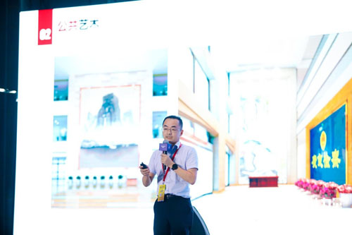 緊接著由東莞市唯美文化陶瓷有限公司總經理朱紅宇先生給大家帶來《磚筑空間文化、美化人類生活》的主題分享。他以《清明上河圖》藏在北京故宮博物院,裝飾在民盈國貿城,《富春山居圖》在白云機場應用,東莞市地鐵2號線,《花開富貴》壁畫等運用為例,詳細說明了中國的一些優秀傳統文化在現代空間中的應用案例。中國的傳統文化也不是不能跟現代空間融合一起,只是說要找到更好的方法。