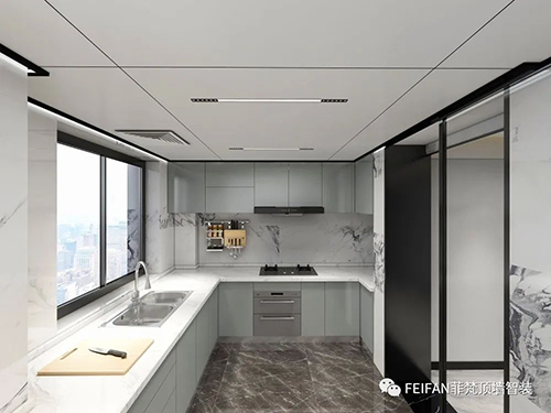 集成化的吊頂安裝方式,適用于多種室內頂面安裝材料(鋁扣板、鋁蜂窩板等),實現了真正的頂面材料與設備系統的集成設計,工廠直接制作成品,現場直接安裝,裝配式裝修,工期短、快速便捷。