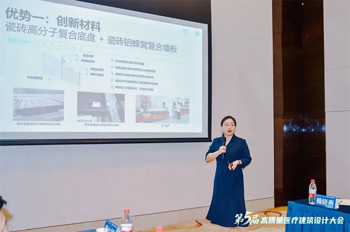 廈門瑞爾特衛浴科技股份有限公司醫康養行業負責人陳君、廣東新明珠綠材科技有限公司總經理陳梓德分別向現場嘉賓介紹了本企業的創新材料和技術解決方案。