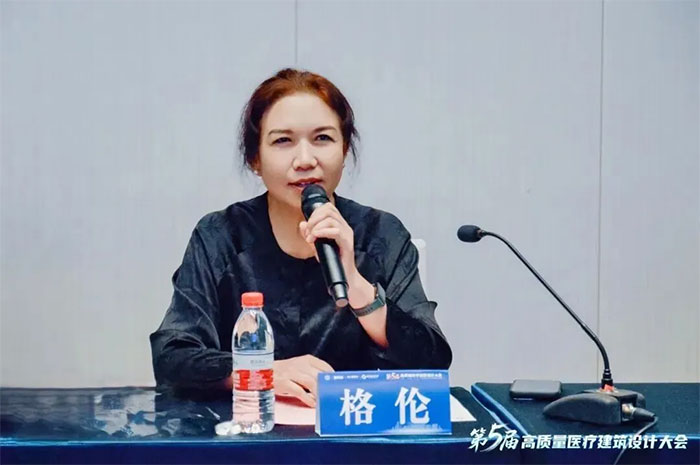 北京建筑大學教授格倫擔任討論環節主持并做精彩點評。她分享了AI在醫養康領域的九大變革,并首次提出醫院建設全生命周期的“三駕馬車”(全策劃—全工藝—全評估)原創理論及方法。