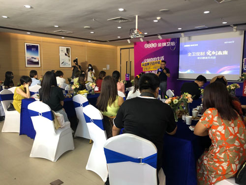今年,金牌衛浴陸續推出了浴室柜、智能馬桶、水龍頭、恒溫花灑、陽臺柜、發熱毛巾桿等一系列高科技衛浴產品。會議上,金牌衛浴產品總監劉育標向大家展示了金牌衛浴最新研發出來的衛浴產品,并就其功能和特性作了詳盡的介紹。