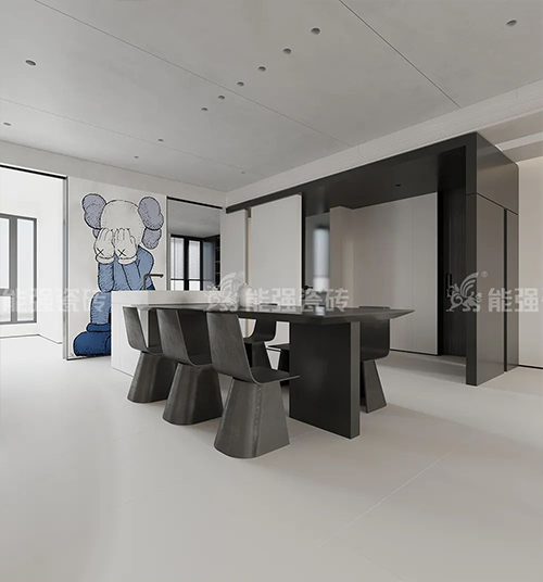 項目信息 項目類型:4室1廳2衛 設計團隊:能強瓷磚 產品編號:NY715175GC 產品尺寸:750x1500mm 產品系列:素巖·法蘭絨系列
