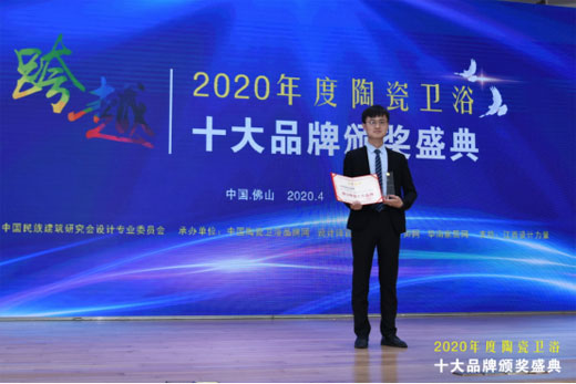 2020年4月22日,由民族建筑研究會設計專業委員會主辦,陶瓷衛浴品牌網,華南家居網共同承辦的“2020陶瓷衛浴十大品牌頒獎盛典”在陶瓷總部基地隆重舉行。