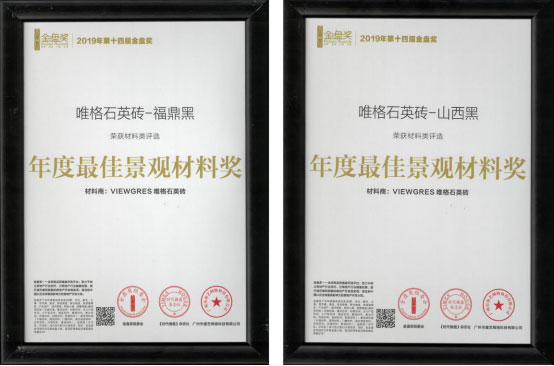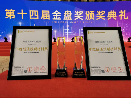 2019年唯格石英磚兩款麻石產品斬獲金盤獎,是對唯格麻石產品品質的認可,更是對唯格品牌實力的肯定。