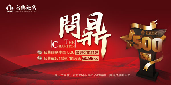 此次名典磁磚蟬聯500最具價值品牌,再一次向行業證明了其建陶領導品牌不可撼動的地位!