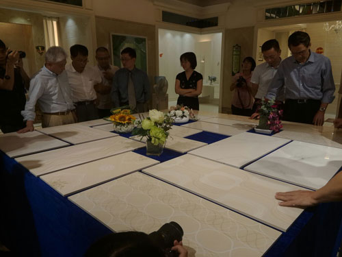 本次專利產品鑒定會以生動形象化的產品宣傳片拉開了會議的序幕,在座的嘉賓共同了解了K金釉面磚以及魔幻釉內墻磚亮麗出彩的外觀、所獲榮譽獎項、獨有的制作工藝和優勢優點等內容,視頻觀賞期間更是獲得了現場嘉賓的連連贊賞。通過宣傳片細致全面的介紹,兩款產品向大眾充分展現了其創新性、差異性和獨特性。