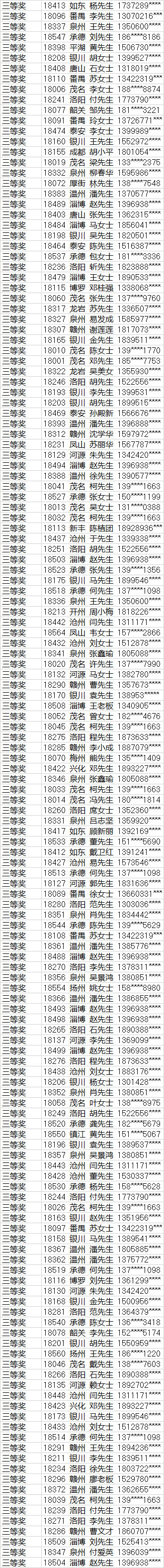 二等獎中獎名單