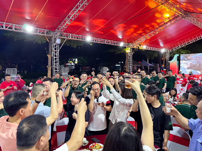 歡聲漫卷,杯盞相邀間流淌著滾燙情誼;笑紋舒展,指尖輕叩處激蕩著赤誠共鳴。粵強宗師匠人們以杯盞為槌叩響時光編鐘,每一聲清越共鳴皆是匠魂共振的注腳,每一簇躍動燭火皆為征途星火淬煉的勛章——這方由赤誠之心編織的宗師之夜,是技藝傳承者們以瓷為箋的團圓盛宴,更是開拓者們以心為炬的奮進序章。