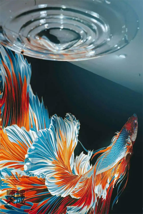 ▲順輝巖板炫彩釉復燒工藝 《順鯉成章》