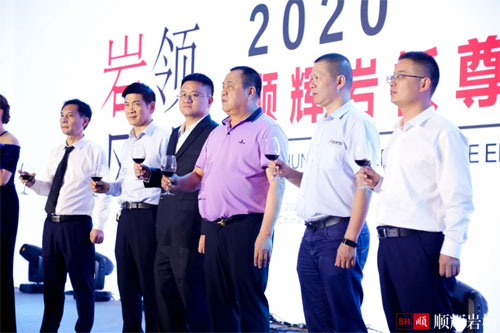 為了感謝各級領導、嘉賓及媒體朋友們對順輝巖板的支持與厚愛,順輝巖板于當晚在希爾頓酒店舉行了“巖領風華——2020順輝巖板尊享晚宴”。順成集團董事長梁有福先生攜公司所有高層共同為本次晚宴祝酒。梁董事長表示:在座的各位都是順輝巖板發展的見證者、貢獻者、收益者,更是順輝巖板未來發展的中堅力量”!