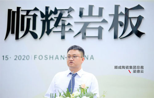 梁總裁在致辭中表示:當下,巖板成為陶瓷品牌開辟第二增長曲線,重回百億巔峰的機遇。而順輝巖板,是順成陶瓷集團扎根中國建材家居市場、布局全球高端巖板品牌,而誕生的一支獨立運營的團隊。將依托中國巖板研究中心、4.0智能巖板工廠、全新巖板展廳,打造中國乃至全球質量最好、規格花色最豐富的產品選購平臺、大規模柔性智造平臺、空間定制設計應用及一站式營運服務平臺,帶動集團在產業布局、品牌運作、跨界整合等方面的轉型升級,為順成在行業的領先地位奠定堅實基礎。