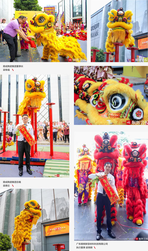 此次順輝巖板開業盛典特別邀請到了中國民間藝術團佛山黃飛鴻舞獅隊,獻上祥獅點睛、瑞獅采青、引財進屋等精彩的舞獅表演。