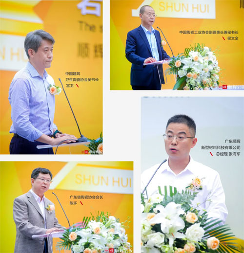 盛典伊始,順成陶瓷集團總裁 梁德云;中國建筑衛生陶瓷協會秘書長 宮衛;中國陶瓷工業協會副理事長兼秘書長 侯文全;廣東省陶瓷協會會長 陳環;廣東順輝新型材料科技有限公司總經理 張海軍;分別對本次開業盛典致辭,并充分肯定了順成集團及順輝巖板在企業經營道路和巖板建設道路上所取得的豐碩成果。今日全新巖板展廳的正式啟用,代表著順輝巖板將注定成為當今巖板行業時代的又一強者。
