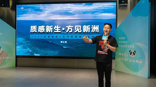 恒福瓷磚市場總監李小龍對新品的定義進行一個解讀。他指出由于當今消費群體的改變,以往的爆款產品已然不再適合當今社會潮流的趨勢。因此我們時刻研究如何滿足新一代的消費所需,從而發現利用先進的技術把自然的奇觀異景還原至產品上,讓用戶在家居空間中得以感受更多自然之美這個方向,是未來市場發展趨勢。因此我們推出了質感磚系列產品,并誕生全新恒福IP——幸福熊。