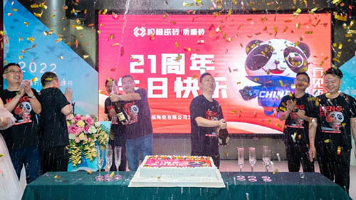 會議最后,我們迎來了恒福瓷磚21周年儀式。香檳一開,好事自然來。預祝我們恒福瓷磚,在未來紅紅火火,幸福熊遍布大江南北。