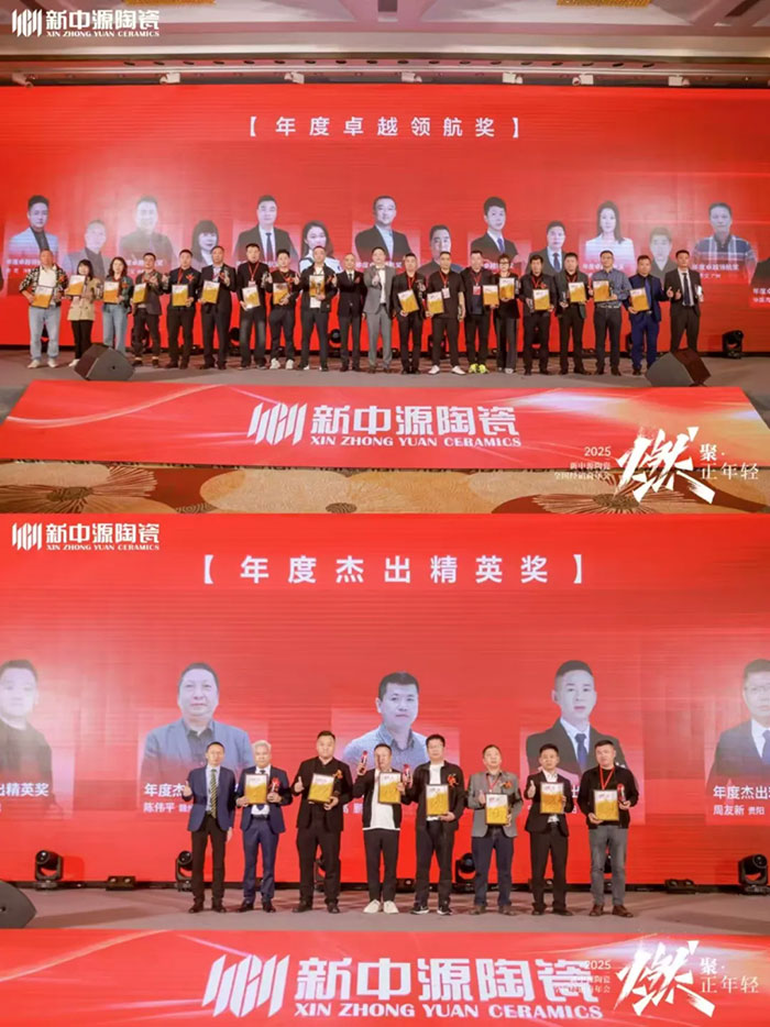 與此同時,在隨后的優秀經銷商表彰典禮上,年度杰出精英獎與年度卓越領航獎等榮譽逐一揭曉。憑借勇于突破的勇氣、持續迭代的決心,這些經銷伙伴在商海中乘風破浪,銳意進取,為新中源陶瓷的發展作出了不可或缺的杰出貢獻。