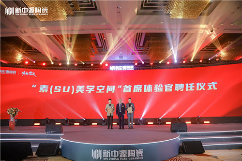 現場,由新中源陶瓷/新中源住工營銷總經理 張磊先生,為到場的代表頒發新中源“素(SU)美學空間”首席體驗官聘書。