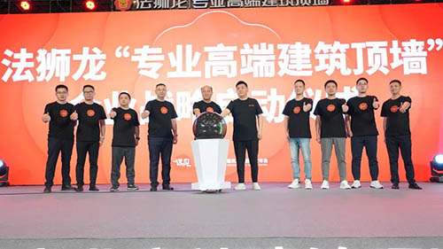 戰略已定、厲兵秣馬、啟動在即!大勢在前,使命前行,戰略啟幕!發布會現場,法獅龍董事長沈正華先生攜喜馬拉雅戰略咨詢董事長趙輝先生、法獅龍高級副總裁匡正三先生、法獅龍副總裁兼零售業務中心總經理陸周良先生、法獅龍副總裁兼工程業務中心總經理范哲昀先生、法獅龍裝企業務中心總經理許清國先生、法獅龍市場中心副總裁沈中海先生、法獅龍研發中心副總裁蔡凌雲先生、法獅龍生產交付中心副總裁朱凱先生、法獅龍工程業務中心副總經理雷喜華先生一起點亮法獅龍“專業高端建筑頂墻”戰略啟動儀式。