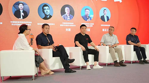 中國建筑裝飾協會副秘書長兼設計委秘書長劉原先生、中國建筑裝飾裝修材料協會天花吊頂材料分會秘書長丁輝先生、中國建材檢驗認證集團有限公司總工程師蔣荃教授、喜馬拉雅戰略咨詢董事長趙輝先生、網易家居全國總編輯胡艷力女士、法獅龍高級副總裁匡正三先生進行了一場思維碰撞,在妙語連珠中給現場及直播間的觀眾朋友們帶來了一場精彩絕倫的頂墻未來高峰論壇。