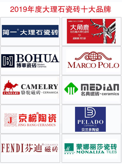 以下為2019年度大理石瓷磚十大品牌獲獎目錄: