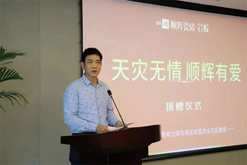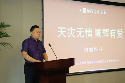 在捐贈儀式上,鄭東新區教文體局黨委書記王恒對順輝瓷磚的慷慨捐贈和勇于承擔社會責任的精神表示了高度贊揚。鄭州市在經歷洪水災害后,校園損毀嚴重,有順輝這樣的愛心企業并肩攜手,一定會加快重建的步伐。