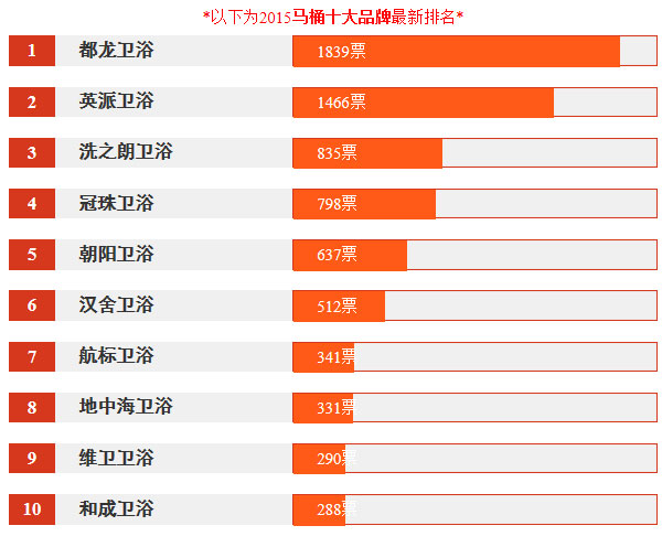2015年度建筑衛生陶瓷十大品牌評選網絡投票自2014年10月1日啟動以來,受到廣大陶瓷衛浴企業、經銷商以及消費者朋友的熱捧,投票活動于2014年12月30日完滿落幕。最終,英派衛浴憑借良好的的品牌形象、品牌口碑、產品質量以及服務態度,受到廣大企業經銷商和消費者的一致肯定,總得票數高居“馬桶十大品牌榜”第二位,以優異的成績成功入圍品牌榜前十,最終斬獲“馬桶十大品牌”榮譽。