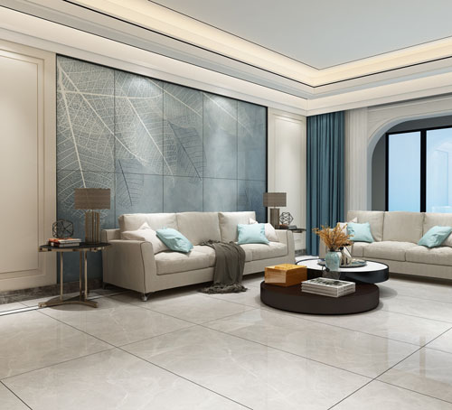 適用場景:淺影拾光色彩比較沉穩,電視背景墻、沙發背景墻均可鋪貼,溫和的藍色也比較適合現代風、簡約風的打造。