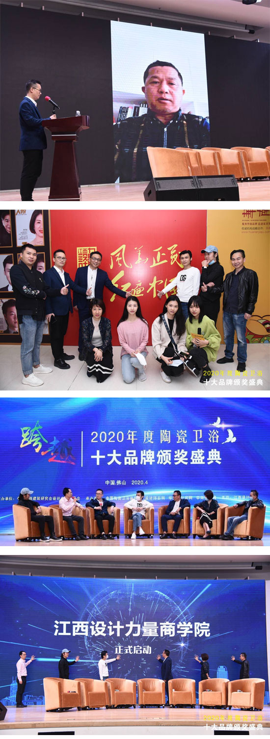 4月22日,由民族建筑研究會設計專業委員會主辦,陶瓷衛浴品牌網、設計師百科、華南家居網、華人設計師網共同承辦的2020年度陶瓷衛浴十大品牌頒獎典禮在陶瓷總部基地隆重舉行。由于新冠疫情影響,活動組委會積極響應政府號召、切實履行社會責任,不聚集舉辦大型活動,一改以往的會議模式,此次活動采用線上+線下的簡約模式舉行。全國各地的家居建材企業家、設計師、經銷商和各界媒體朋友通過網絡共同見證了頒獎盛典線上發布會的盛大舉行。