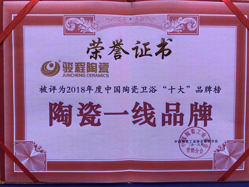 3月27日,由陶瓷工業協會營銷分會主辦,陶瓷品牌網、華人設計師網共同承辦的2018年度陶瓷衛浴十大品牌榜頒獎盛典在G20峰會會場杭州國際博覽中心隆重舉行。其中包括駿程陶瓷在內的上百家陶瓷企業,以及來自全國各地的家居建材企業家、設計師、經銷商和各界媒體朋友一同出席本次頒獎盛典。駿程陶瓷連續兩年榮膺“瓷磚十大品牌”、“陶瓷一線品牌”稱號并斬獲“大理石瓷磚十大品牌”稱號。