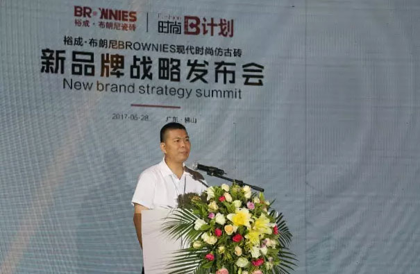 5月28日下午,2017“時尚·b計劃”裕成·布朗尼瓷磚新品牌戰略發布會在佛山國藝度假酒店正式啟動。新潤成集團董事長關潤啟、新潤成集團董事關潤開、新潤成集團董事兼總裁關潤淡、新潤成集團董事,廣東新潤成陶瓷有限公司總經理關偉洪、裕成?布朗尼瓷磚品牌經理余偉文等領導以及來自全國各地的經銷商一同參與了盛會。