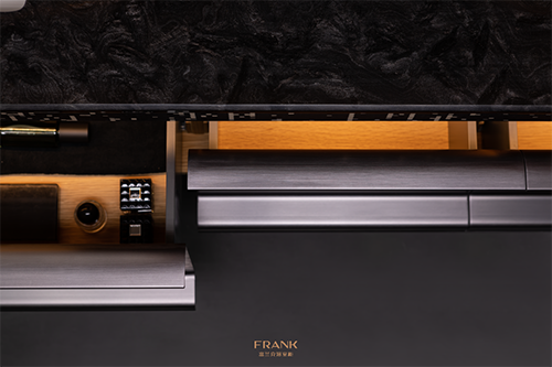 異材交融 | 精工雕琢 傳統木皮鑲嵌工藝,細膩而考究 整體散發出極高的品質標準 意大利百年頂奢藝術木皮 黑淺相間,極具辨識度的紋理 意大利進口膚感油漆 細節處鑄煉高級質感