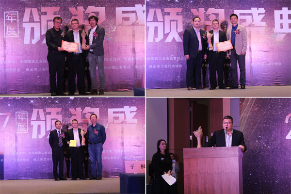 4約日下午,由陶瓷工業協會營銷分會主辦,陶瓷品牌網、華南家居網、華人設計師網承辦的“ 2017陶瓷(衛浴)十大品牌頒獎盛典 ”,于佛山中歐國際會議中心盛大舉行。現場星光熠熠,匯集了多名行業協會領導、家居建材渠道知名企業家、家裝設計師、以及各大新聞媒體,共同見證建筑陶瓷頒獎盛典。該頒獎大會是陶瓷衛浴建材家居行業優秀品牌的授勛表彰大會,名典磁磚憑借多年來在產品創新方面的積淀以及在設計師行業中的良好口碑,最終在多方媒體的鏡頭聚焦下,榮膺“瓷磚十大品牌”、“瓷拋磚十大品牌”和“設計師推薦品牌”三大獎項。