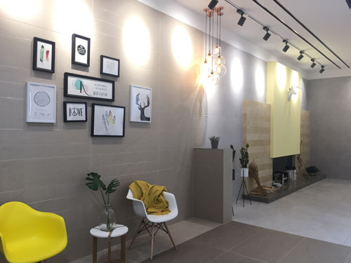 啟動儀式過后,為了讓在座對摩卡館有深入了解,珈納陶瓷設計總監對產品進行了詳盡解讀。在緩緩的輕音樂中摩卡現代仿古磚一一揭幕,珈納陶瓷的設計總監從每款產品的創意來源出發,對產品蘊藏的深層次文化、設計理念和研發工藝等進行深度挖掘和描述。整個摩卡館將原始的質感、懷舊的氣息、神秘的空間感和時尚風潮表現得淋漓盡致,在閃耀的聚光燈下,摩卡館凝聚著全場的贊美與驚嘆!