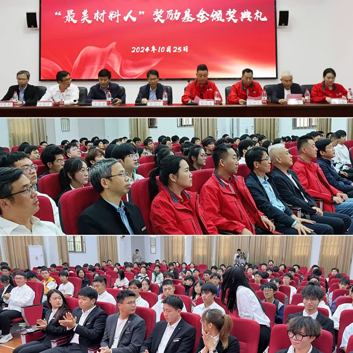 碧虎防滑大理石瓷磚創始人彭天奎攜人事總監張衛江、首席顧問王勇、市場總監陳義芳,材料科學與工程學院黨委書記蔣方樂、院長汪永清、黨委副書記計鎮華、國家實驗教學示范中心主任羅民華以及全體獲獎學生、師生代表共計160余人參加本次頒獎典禮,共同參與見證碧虎“最美材料人”獎學金頒發的榮耀時刻!
