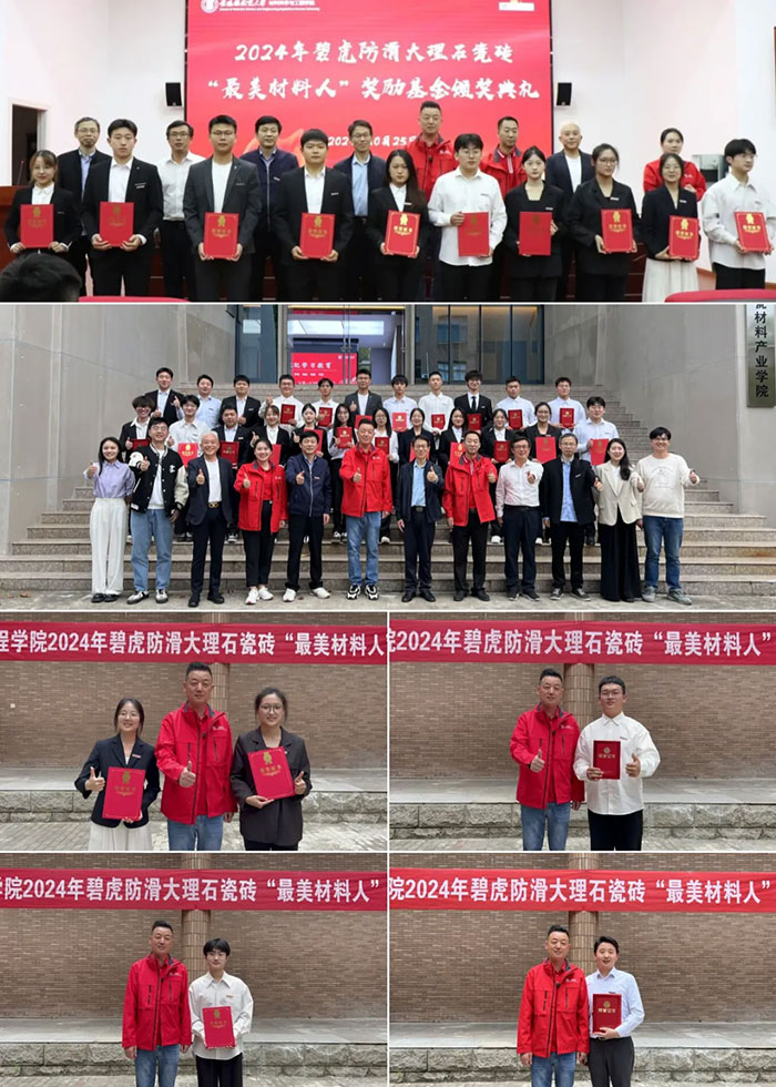 碧虎設立“最美材料人”獎學金,為那些有夢想、有才華的學子們提供一份支持,幫助他們實現自己的人生價值。同時碧虎全力響應國家號召,積極推進產教研融合,為碧虎、為陶瓷行業源源不斷注入新鮮血液,希望莘莘學子能致力于技術研發,共同推動超防滑瓷磚事業發展!