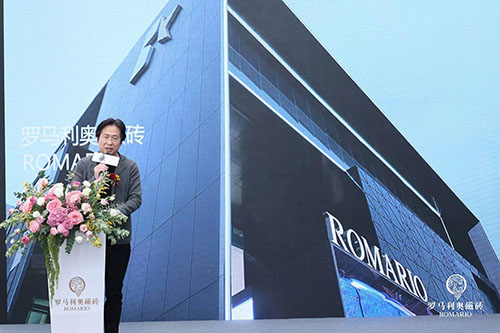 上午10:00,盛會在廣東冠星陶瓷企業董事總經理何總的精彩致辭中拉開序幕。何總表示,2023年,面對充滿未知與挑戰的市場環境,羅馬利奧再次肩負起責任與擔當,直面市場挑戰,率先開啟產品升級之路,與澳洲頂級設計大師、全球排名前100設計師Greg Natale達成了深度戰略研發合作,雙方攜手挑戰各自領域極限打造出高端差異化磁磚新品——DIMORA(蒂莫拉)系列,以國際頂尖設計、先進制瓷工藝賦能產品升級,讓羅馬利奧在內卷的市場中脫穎而出,為企業贏來發展契機,為行業高質量發展注入新動能。